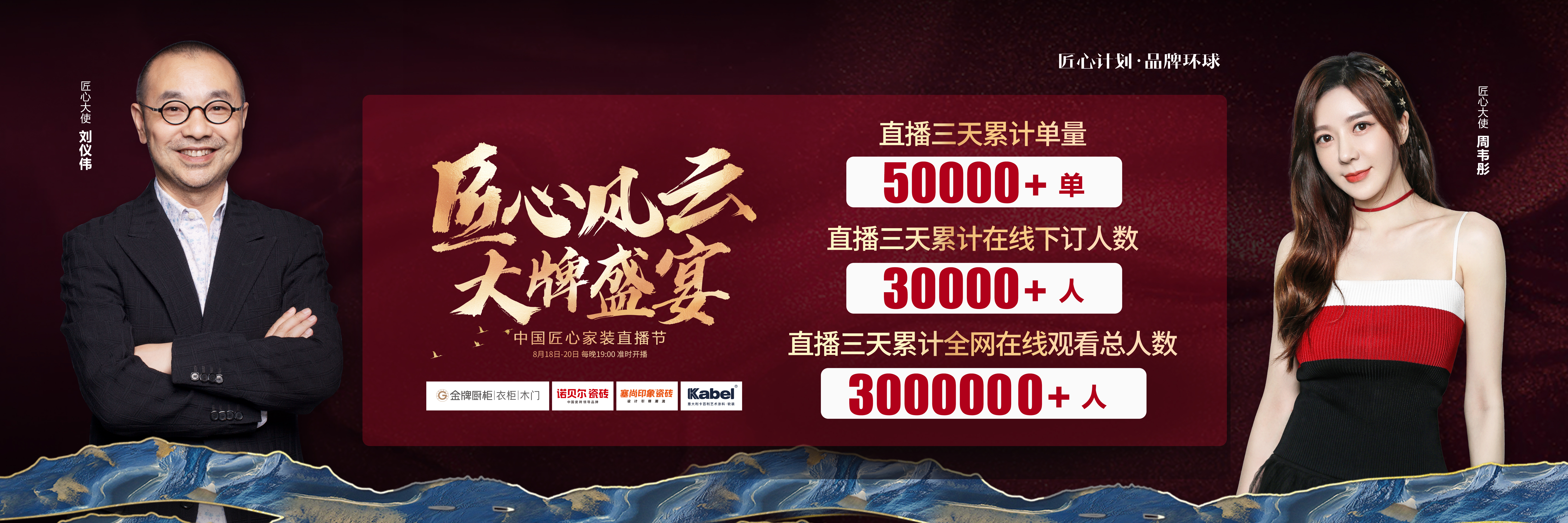 由豪门国际厨柜、诺贝尔瓷砖、塞尚印象瓷砖、卡百利艺术涂料联合缔造,创赢科技系统支持全案营销执行的“匠心风云 大牌盛宴”中国匠心家装直播节于8月20日圆满落...